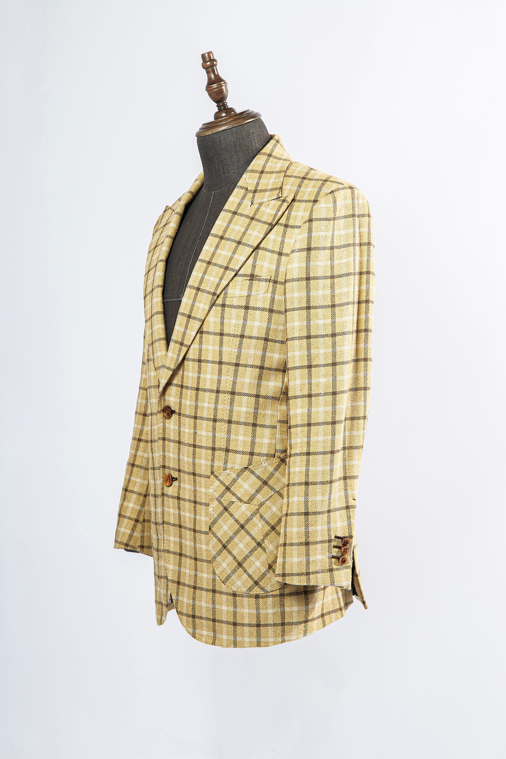 Rediscover the connection between luxury, craftsmanship, and nature with our hand-tailored Tussah silk suit, designed with a traditional full canvas structure for unparalleled elegance and durability. Crafted from the finest wild Tussah silk, this suit embodies the organic beauty of nature, showcasing a textured weave and a soft, natural sheen that exude sophistication while staying grounded in the raw beauty of its origins.